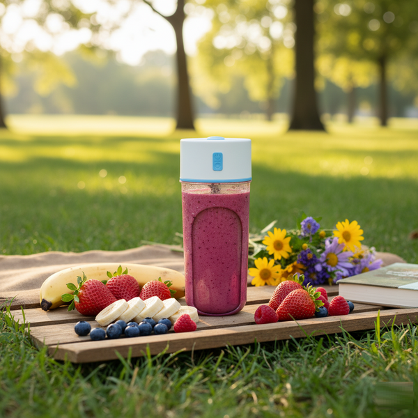 Our FitSipβ’ blender features a powerful rechargeable battery that lasts up to 15 blends on a single charge. Perfect for your daily smoothie routine without constant recharging.